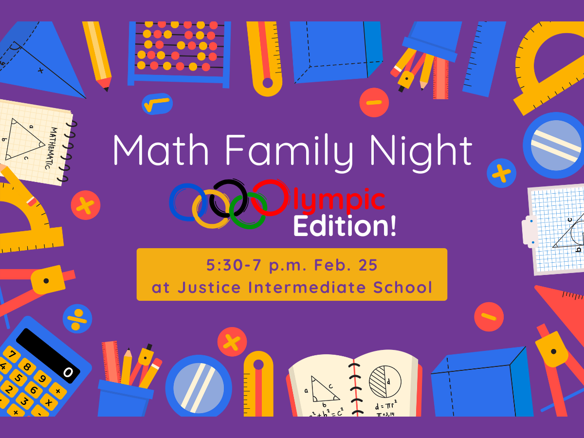 We are excited to welcome our Justice Intermediate families to Math Family Night - Olympic Edition on Feb. 25!