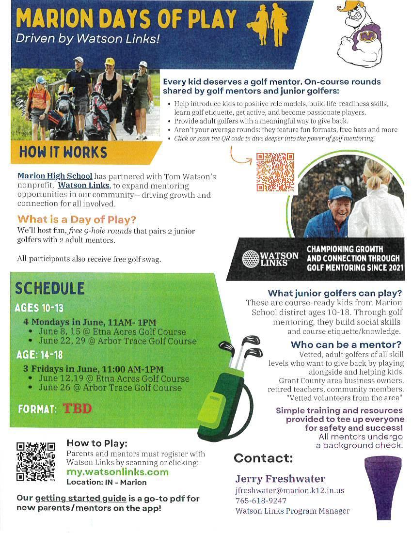 We are looking for youth golfers AND adults interested in volunteering as golf mentors. View the Watson Links flier attached to this post for more details about this program, or check it out online here.